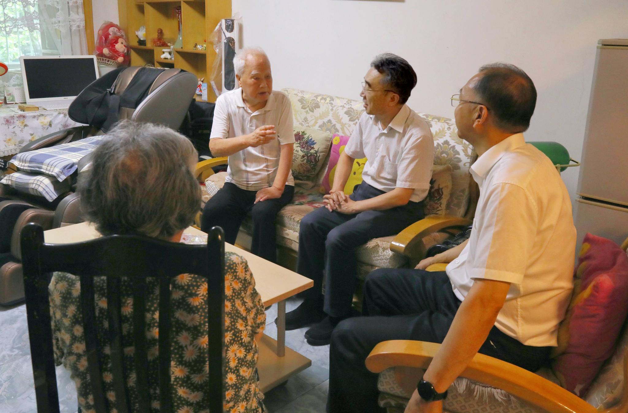 在冉晓先家中,校领导关切地询问他的身体状况和生活情况,认真倾听他追忆峥嵘岁月,叮嘱他保重身体,安享幸福晚年,并表示学校将继续用心用情用力做好服务保障,落实好各项政策待遇,切实解决实际困难,让老党员老有所养、老有所乐、老有所安。
