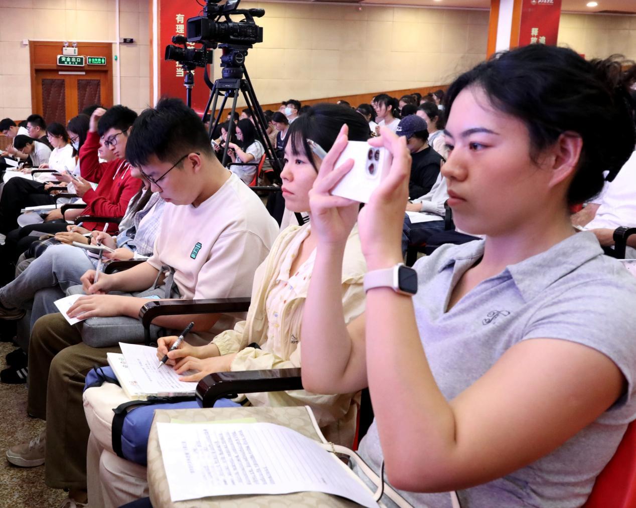 段留生介绍了学校的发展历程、办学定位、学科专业特色、人才培养模式等。他指出,近年来,学校深化研究生分类培养改革,不断提高教师科研育人能力,大力推进国际合作与交流,学生科技创新能力显著提升。希望同学们树立远大志向,以研促学、创新为要,争做有理想、敢担当、能吃苦、肯奋斗的新时代好青年,在强国建设、民族复兴征程上书写青春华章。