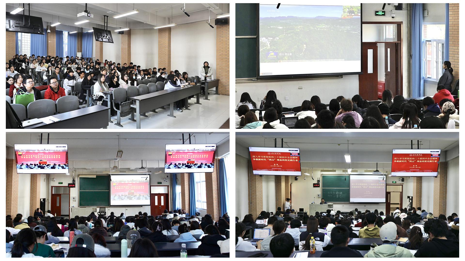 赵锋为同学们深入讲解了党的二十届四中全会胜利召开的重大意义和全会作出的重要部署,围绕学习贯彻习近平总书记在全会上的重要讲话精神和《中共中央关于制定国民经济和社会发展第十五个五年规划的建议》(以下简称《建议》),结合此次“大思政课”主题,为同学们深刻阐述了习近平生态文明思想的重要内容、丰富内涵以及《建议》关于加快经济社会发展全面绿色转型、建设美丽中国的重要部署和安排,重点讲解了“两山”理念的科学内涵、核心要义、时代价值和实践要求。