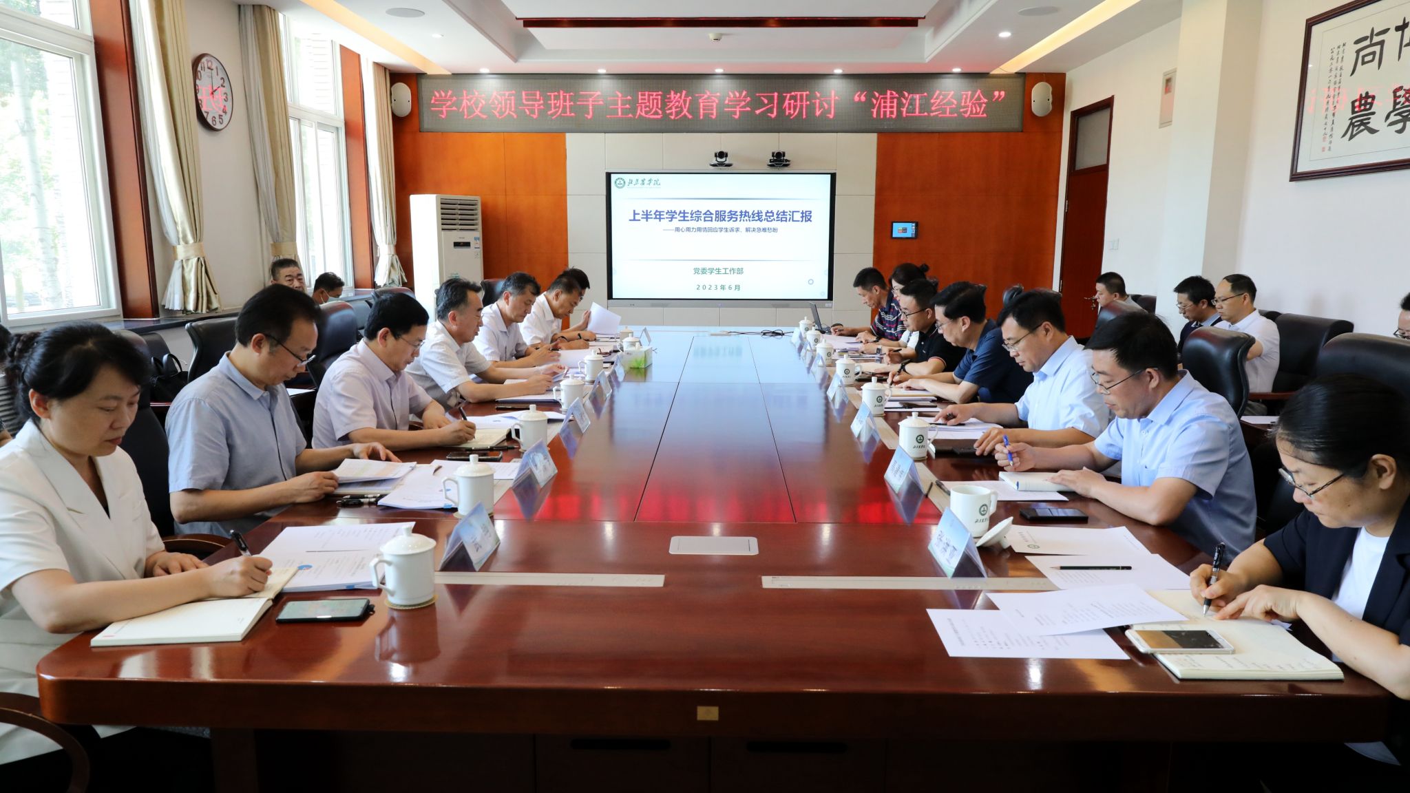 校领导赵锋、段留生、仲丛生、李伟书、张劲柏、武艳分别交流发言,聚焦“浦江经验”的精髓要义、时代价值和实际运用,谈体会、谈认识、谈思路、谈举措,深刻学习领会“浦江经验”所蕴含的人民至上的真挚情怀、实事求是的问题导向、以上率下的责任担当、大抓基层的科学方法,并结合学校上半年“接诉即办”情况,深入研讨交流践行“浦江经验”,更好地解决师生急难愁盼,凝心聚力推动学校事业高质量发展。