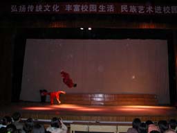 2005年4月28日晚,永利3044官网唯一以“迎奥运,弘扬民族文化”为主题的奥林匹克教育节系列活动之中华武术功夫剧在大礼堂隆重上演。来自少林武术学校的学员们为永利3044官网唯一的师生带来了惊心动魄、精彩绝伦的少林功夫、硬气功等表演。一系列的精彩表演向师生们展现出了我们中华武术功夫的精髓及民族文化的深厚底蕴,表演一次次赢得了在场师生的热烈掌声。