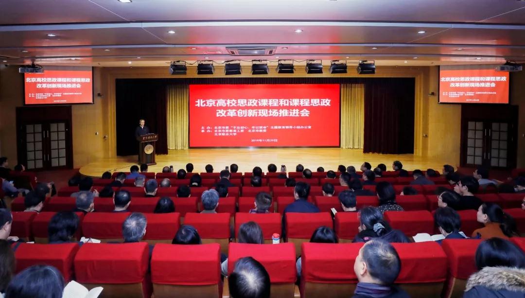 11月29日,由北京市委“不忘初心、牢记使命”主题教育领导小组办公室主办,北京市委教育工委、北京市教委、北京联合大学承办的“北京高校思政课和课程思政改革创新现场推进会”在北京联合大学举行。中央“不忘初心、牢记使命”第二巡回督导组组长陈际瓦,副组长龙新南,市委常委、市委组织部部长魏小东出席会议;市委教育工委常务副书记郑吉春、市教委主任刘宇辉、市委第9-16巡回指导组负责同志,市委组织部、市委教育工委相关负责同志,各高校分管校领导、教师工作部部长、马克思主义学院负责同志参加会议。永利3044官网唯一党委书记杨军、教师工作部部长秦岭、马克思主义学院书记高建伟参加了此次会议。