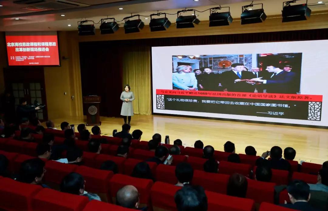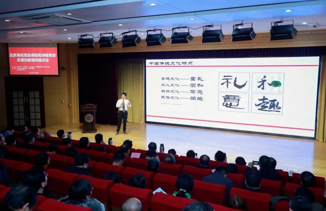 此次会议旨在进一步总结和推广主题教育中狠抓思政课和课程思政建设的好经验、好做法,营造全市高校教师“守初心、担使命、找差距、抓落实”的良好氛围,并对思政课和课程思政改革创新再部署、再动员、再推进。会上,作为思政课教师代表,北京第二外国语学院副教授宋振美、首都师范大学教授黄延敏、首都经济贸易大学教授冯培先后进行了现场示范教学,重点展示了将习近平新时代中国特色社会主义思想融入思政课教学;作为专业课教师代表,北京联合大学讲师姜喜龙、中国戏曲学院教授张晶、北京工业大学教授许成顺,先后现场示范交流课程思政教学,着重展示了挖掘和运用各门课程所蕴含的思想政治教育元素。
