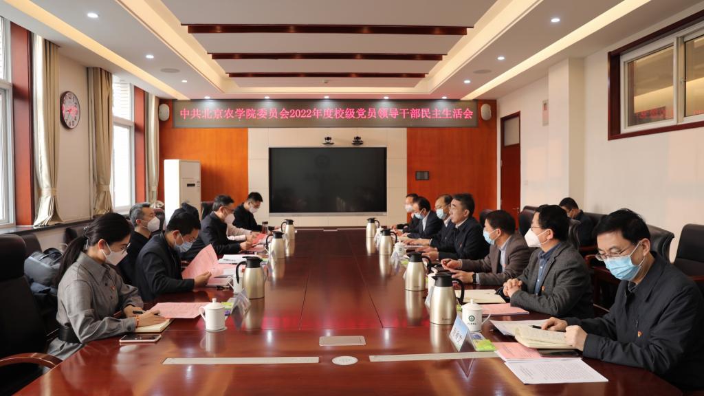 1月13日上午,学校召开2022年度校级党员领导干部民主生活会。会议以“全面贯彻习近平新时代中国特色社会主义思想,深刻领悟‘两个确立’的决定性意义,增强‘四个意识’、坚定‘四个自信’、做到‘两个维护’,团结带领党员干部群众以奋发有为的精神贯彻落实党的二十大作出的重大决策部署”为主题,联系学校事业发展实际,联系个人思想和工作实际,全面对照检查,深入查摆问题,严肃开展批评和自我批评。