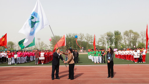 在会旗交接仪式上,本届运动会承办方园林学院院长马晓燕将会旗交予校长王慧敏,第33届运动会承办方食品科学工程学院院长范双喜从校长王慧敏手中接过会旗,完成了任务的正式交接。