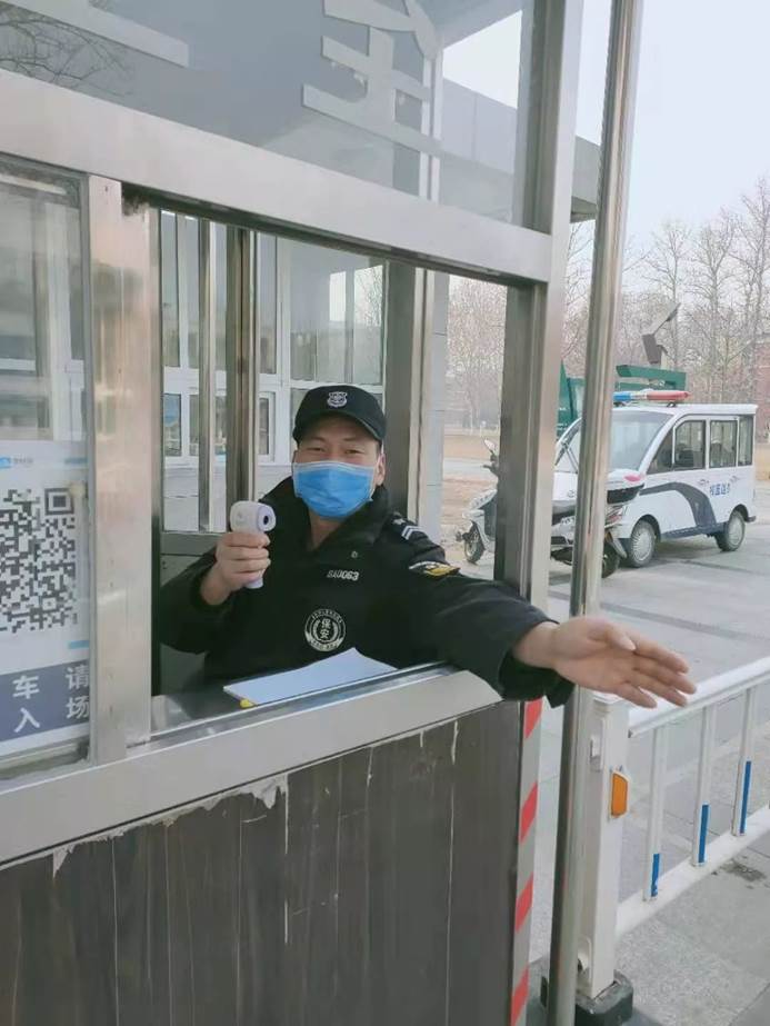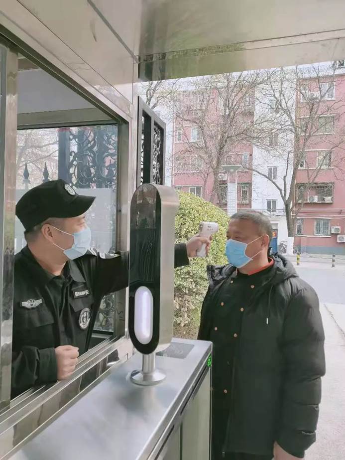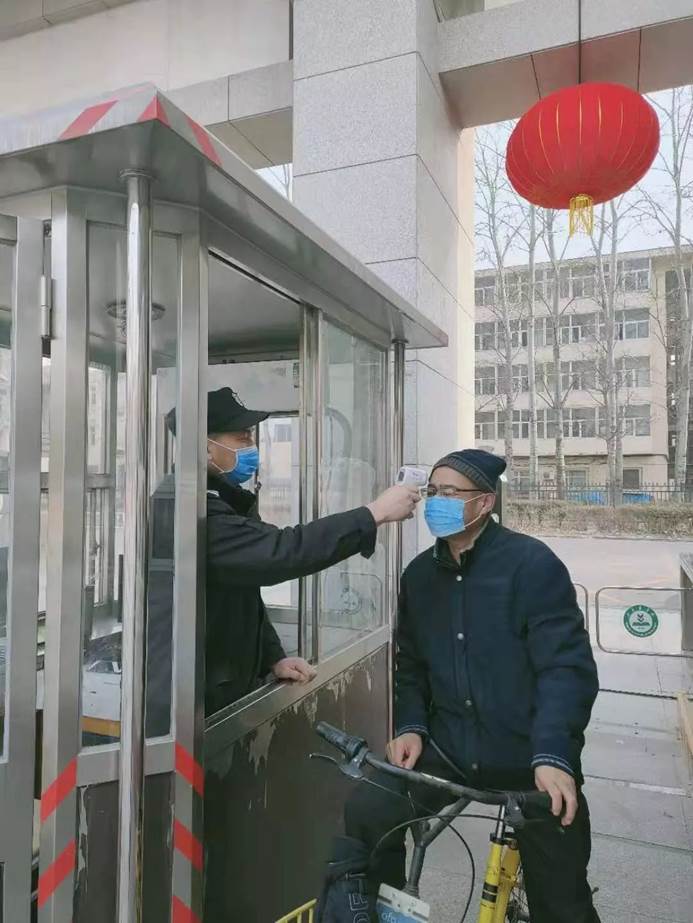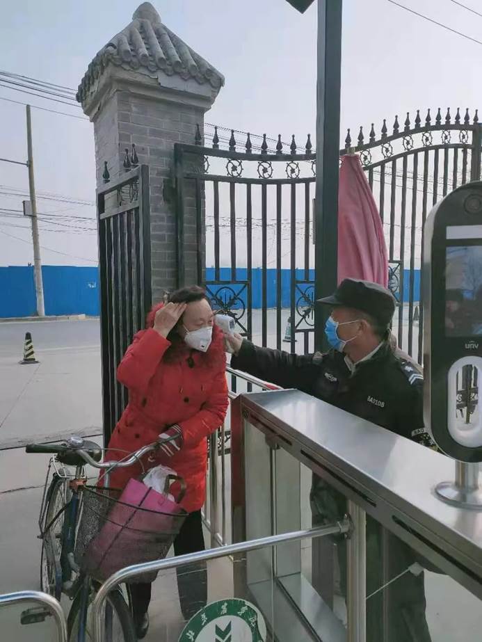 安保人员严格做好人员检查和体温检测工作,每一个询问,每一次检测,都是为健康负责,为生命负责。
