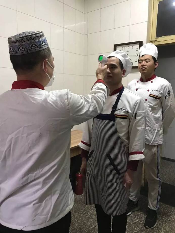 为了做好防控工作,学校严格执行返京职工管理制度。一切未在京的职工不得回校,这给在校值班人员加大了工作强度,他们从放假至今一直坚持在工作岗位,全力做好防控措施。以食堂为例,主管食品加工售卖的八名师傅及四名保洁师傅从寒假开始至今始终没有休息一天,他们主动承担起一食堂目前100多人的就餐保障工作。