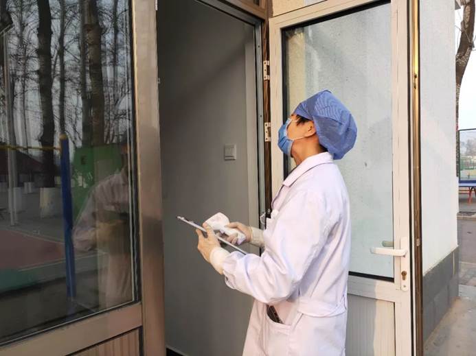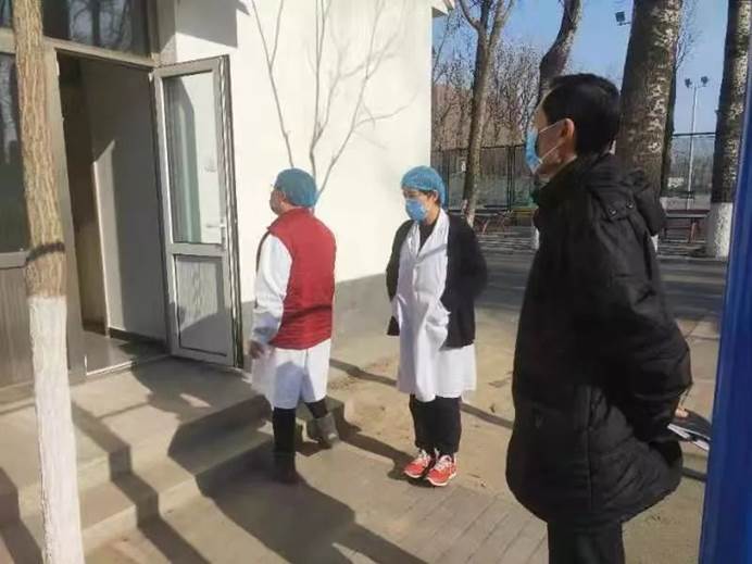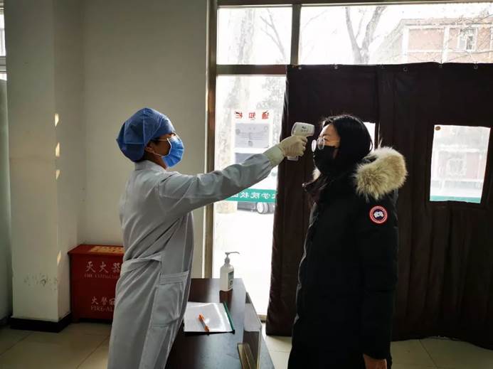 校医院工作人员坚守岗位,排查发热人员。为了防控疫情,在医用物资紧缺的关口,他们想尽办法牺牲自己大量时间为一线值守部门筹备医疗物资,并及时发放。对到京返校教工进行隔离管理,监测体温等。
