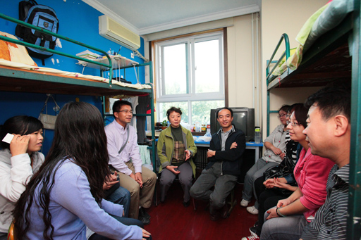 高书记一行来到同学们所在宿舍,详细询问了同学们在林大的学习生活情况,对同学们提出的问题逐一详细解答,并代表学校对同学们送去了节日的祝贺。当得知同学们已经适应林大的学习生活并且和林大学生融洽相处,高书记一行感到非常高兴。她希望在林大学习的同学秉承北农精神,在知识的道路上一往前行,并嘱咐他们保重身体,及时应对天气变化。