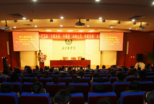 开幕式特别邀请到了中国心理协会大学生心理咨询专业委员会常务理事、北京高教学会心理咨询研究会秘书长、首都师范大学心理咨询中心主任蔺桂瑞教授。蔺桂瑞教授以《关爱心灵,珍爱生命》为主题的精彩讲座和慈母般的教导,使同学们受益匪浅,赢得了阵阵掌声。