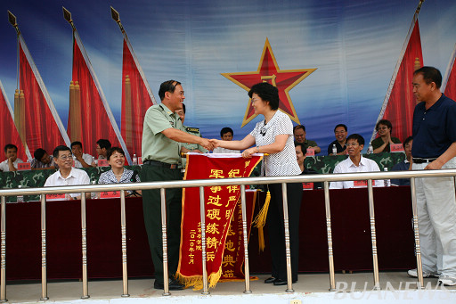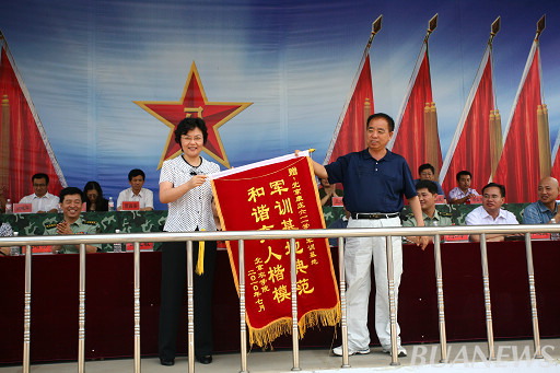 仪式上,党委书记王慧敏向承训部队和北京康庄611军训基地分别赠送锦旗。