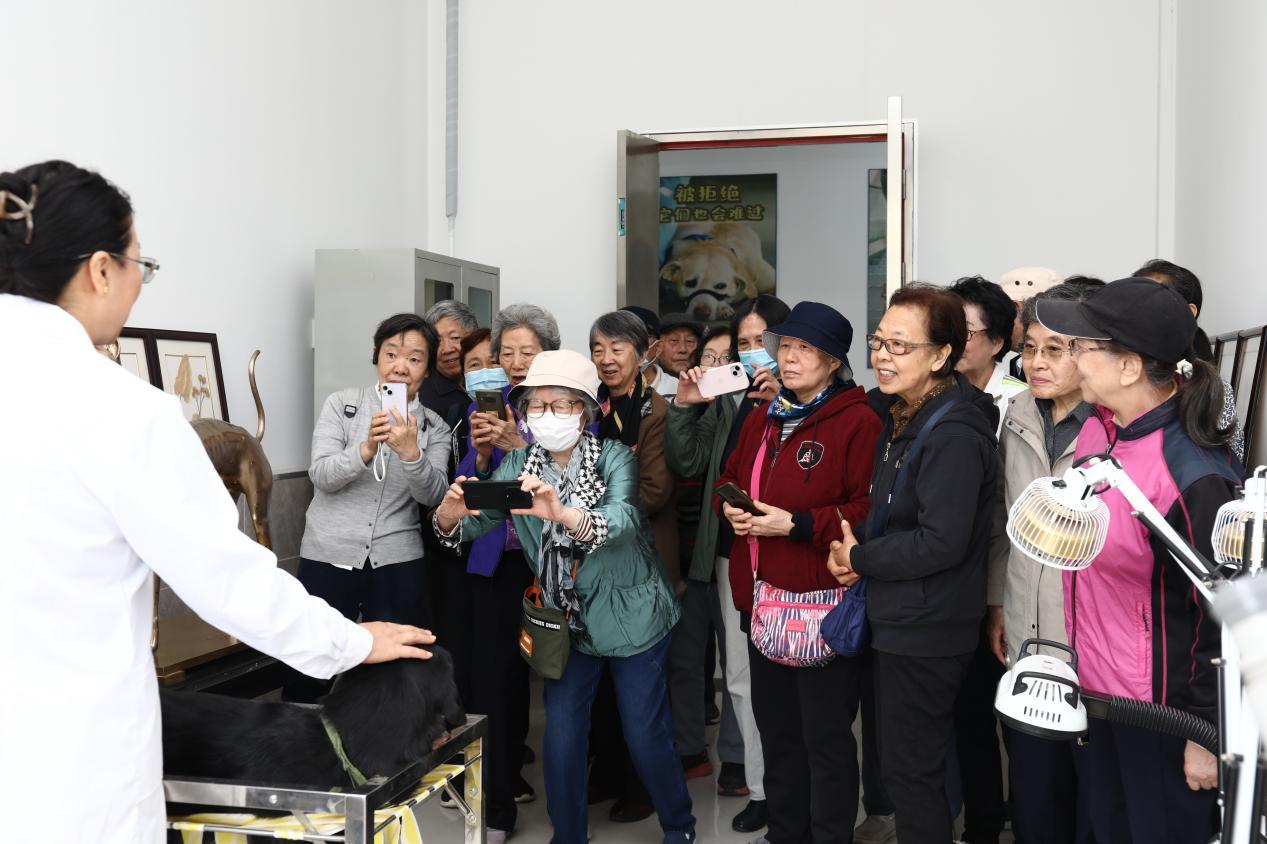 在北京市导盲犬培训示范中心,老同志们参观了解了北京市导盲犬培训基地的建设进展与运行情况,察看了犬舍、中兽医诊疗室、诊断处置室以及训练场等,现场观摩了导盲犬训练演示,对基地在提升视障群体生活品质、服务首都残疾人事业高质量发展的做法和进展给予充分肯定。