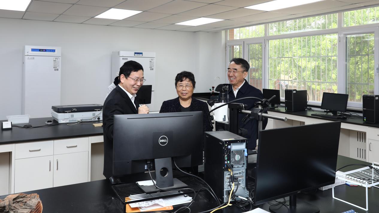 在学校植物生产国家级实验教学示范中心,老同志们现场参观了智能连栋温室,了解学校实践教学做法、劳动教育特色和师生服务乡村振兴的成效。