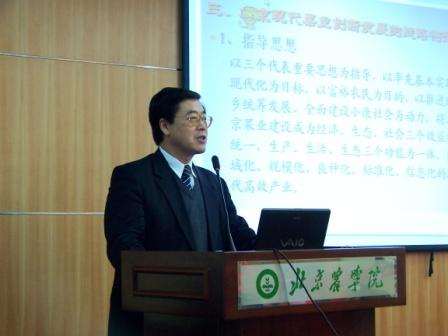 院长王有年在会上作了题为 “北京现代果业的创新与发展” 的主题报告, 报告内容分为“现代果业引领北京都市型现代农业的发展”、“北京现代果业发展的现状”、“北京现代果业创新发展的战略构想” 等三个方面的内容,言简意赅而又通俗易懂地介绍了北京现代果业的发展现状及未来发展的战略构想,受到了与会者的一致好评。