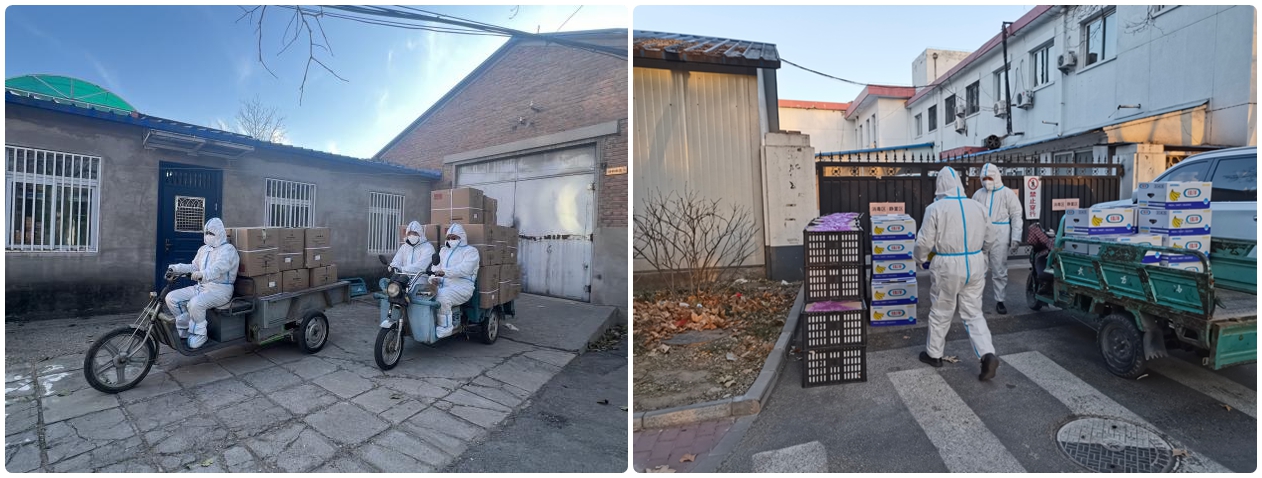 管理岗三名职工,第一时间参加了后勤的物资配送队,向各楼宇运送各种防疫物资。
