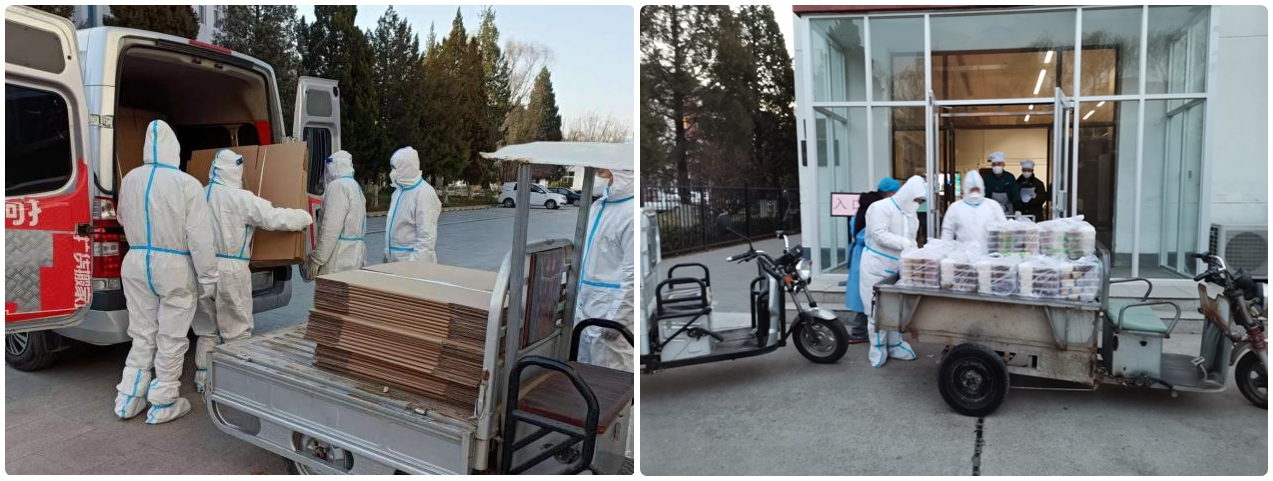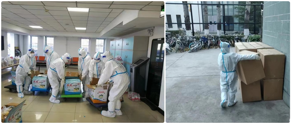 最后一路小队驻守家属区,负责家属区的维修保障、校内外部分防疫物资的保管转运和北农酒店隔离人员的送餐工作。