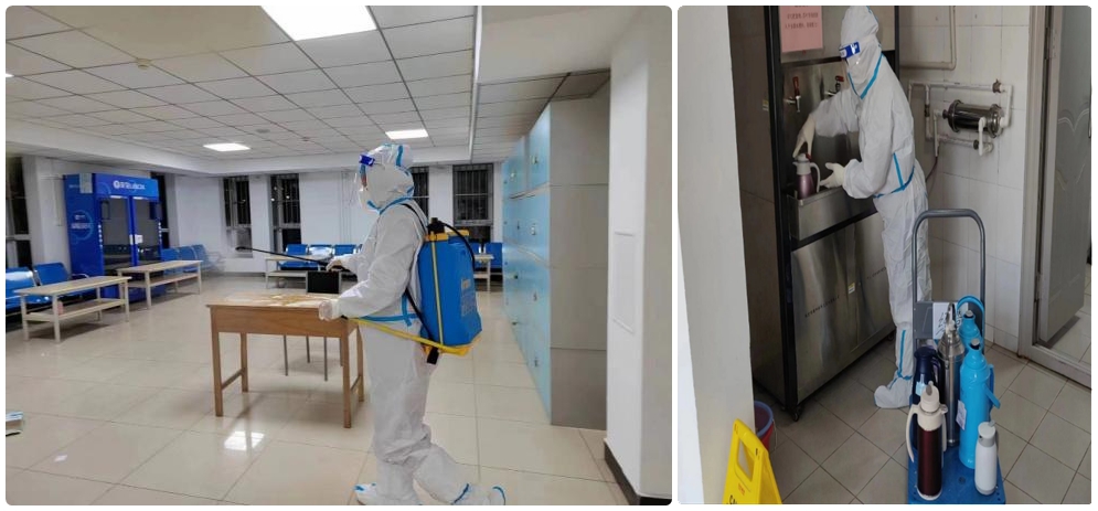 另一路3人小队驻扎学生公寓。他们身穿防护服,既是维修师傅,又是送餐到户的“送餐员”,还是保卫环境的消杀员……只要学生有需要,他们就冲在前、干在前!