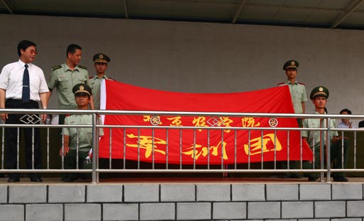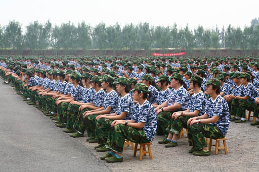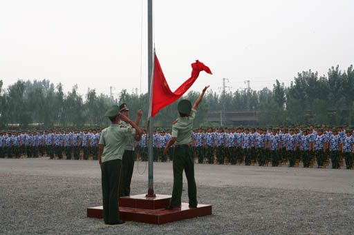开学典礼之后的军训开营仪式上,学生处处