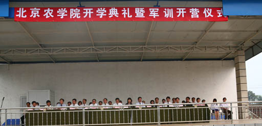 ,秋高气爽,永利3044官网唯一2006级新生开学典礼暨军训开营仪式在怀柔区群英昊军训基地隆重举行。党委书记孙尧东,院长王有年,党委副书记罗维忠、王晓霞,副院长杜晓林,纪委书记朱生利,院长助理姚允聪出席了开学典礼。典礼由党委学生工作部部长、学生处处长孙亚利主持。