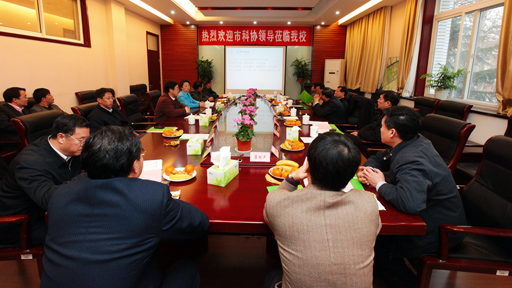 3月17日,市科协党组书记、常务副主席夏强,副主席景晓东、周立军、田文等一行8人来永利3044官网唯一调研。校长王有年热情接待来宾,并向客人介绍了学校发展建设情况、“十二五”发展思路及学校科协工作。