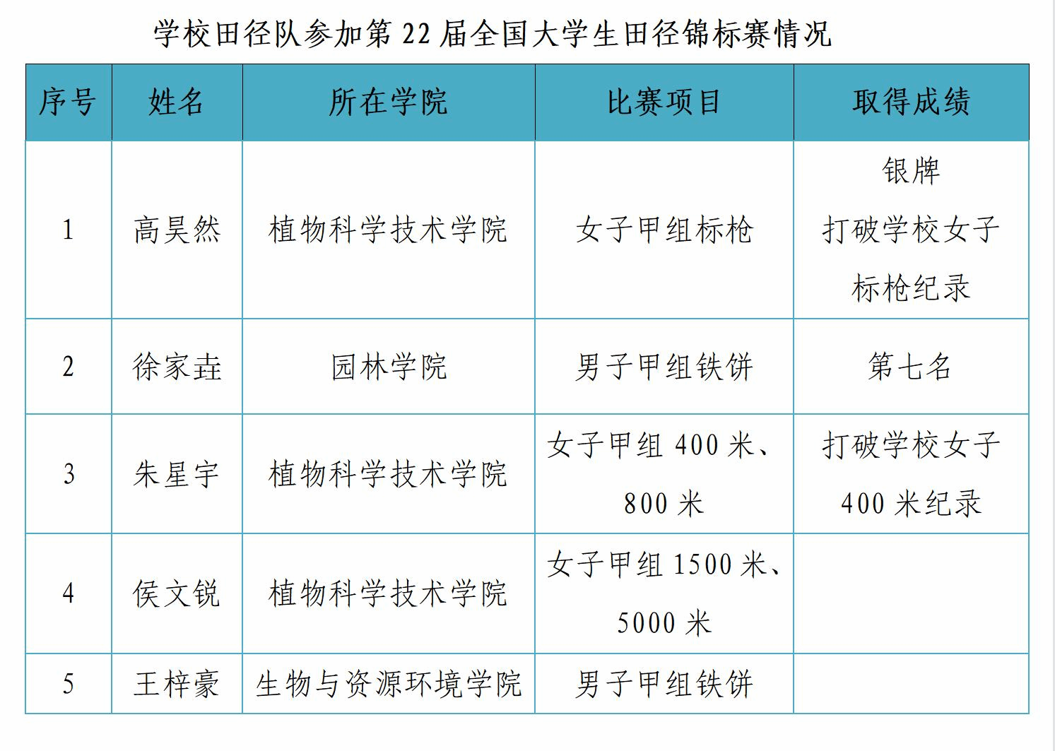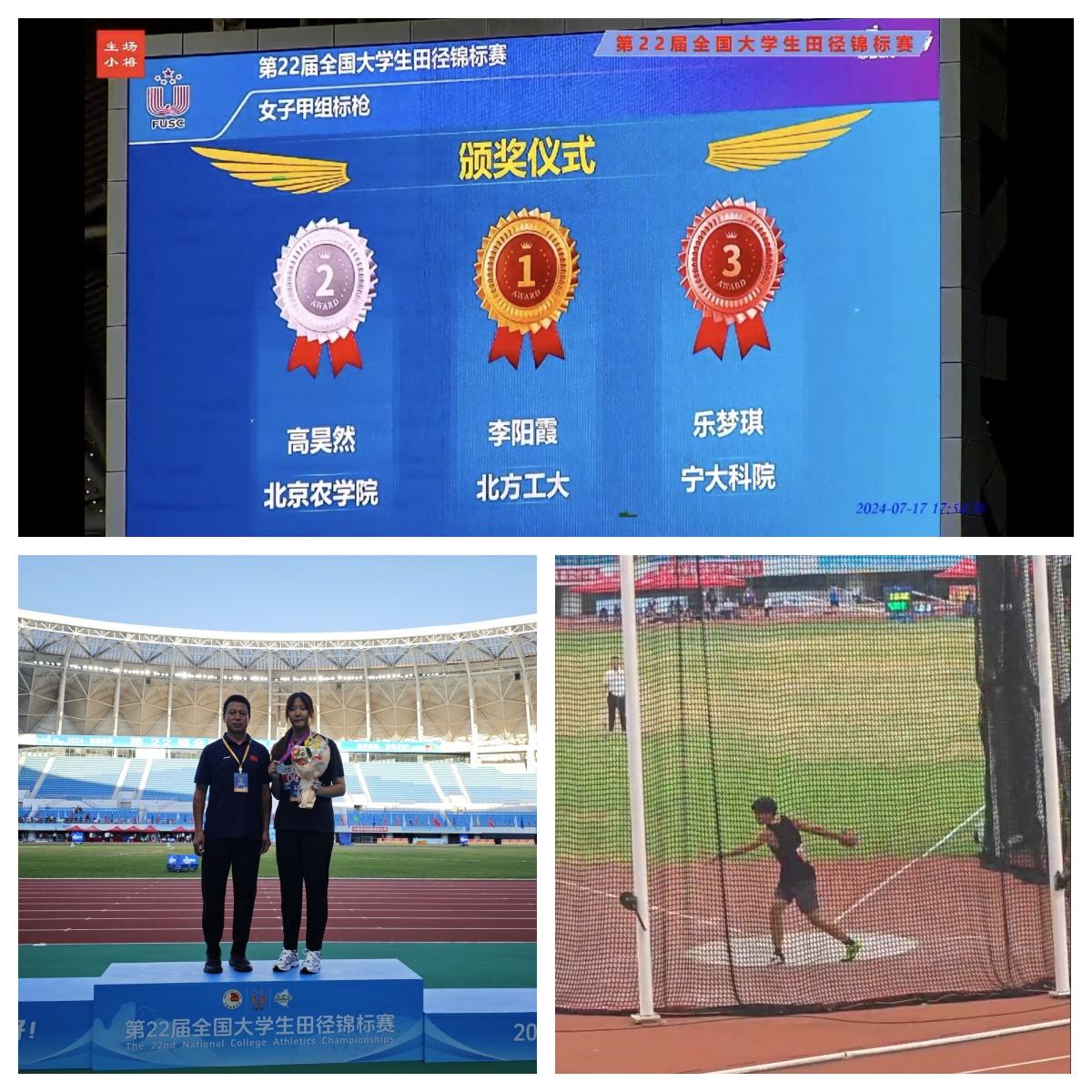 近日,第22届全国大学生田径锦标赛在福建南平举行,共有来自全国30个省、自治区、直辖市的438所院校5285名运动员及教练员参与本次赛事,参赛单位数量与运动员规模均创历届新高。永利3044官网唯一田径队在体育教学部刘军占、逯合江两位老师的带领下,分别斩获女子甲组标枪银牌、男子甲组铁饼第七名的好成绩。