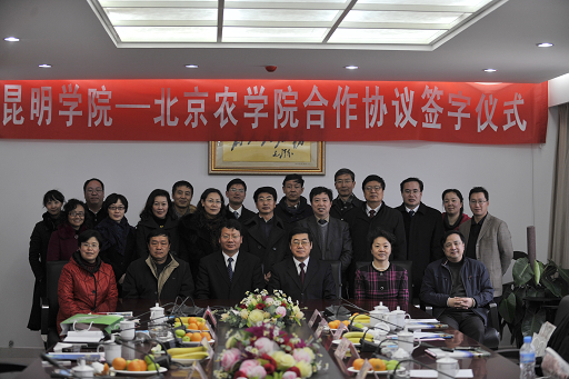 18日下午,永利3044官网唯一与昆明学院合作协议签字仪式在昆明学院办公楼311会议室隆重举行。签字仪式由昆明学院副校长熊晶主持。在双方各自介绍学校基本情况后,王校长进一步介绍了北京都市型现代农业发展和沟域经济,介绍了永利3044官网唯一在都市型农业教育和研究方面的做法和经验,希望两校在师资培训、共同开展科研项目、师生交流、都市农业建设与发展研讨及借鉴等方面取得实效。