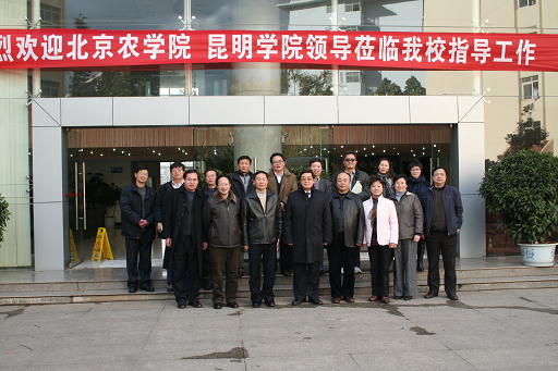 1月18-20日,校长王有年、党委副书记高东、副校长郑一淳一行8人考察了昆明学院。并与昆明学院签订发展都市型现代农业合作协议。在昆明学院校长陈世波、副校长熊晶的陪同下,校长王有年一行还参加了昆明市政府与昆明学院举办的都市型现代农业发展座谈会,参观考察了昆明晨农企业集团、云南农业大学、西南林业大学、昆明市石林县台湾农民创业园等地。