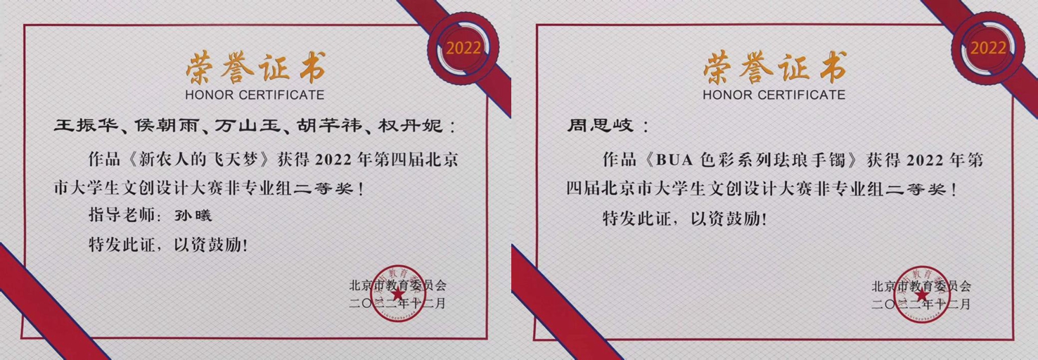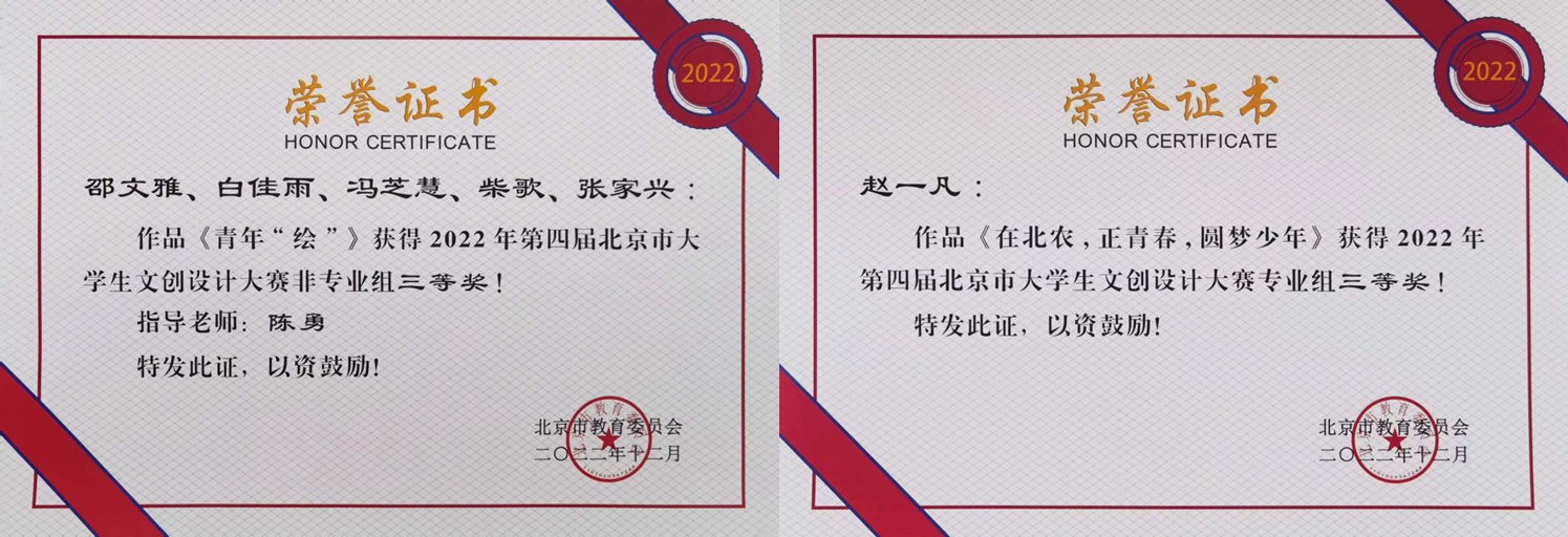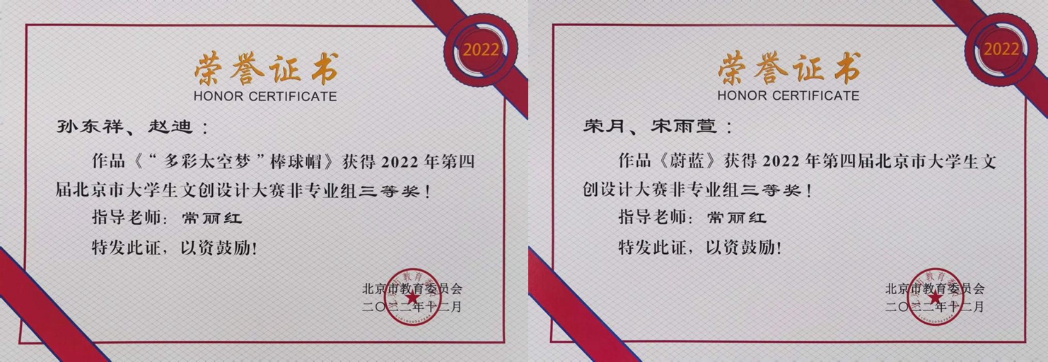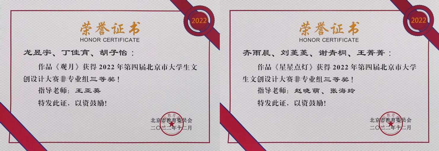 近日,北京市教委公布了2022年第四届北京市大学生文创设计大赛评选结果,永利3044官网唯一获优秀组织奖,并获非专业组二等奖2项、三等奖5项、专业组三等奖1项的好成绩。