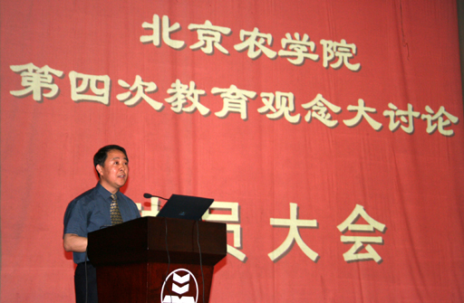 他指出,今天我们召开大会的目的就是要深入动员、广泛发动全校教职工参与第四次教育观念大讨论活动,进一步增强做好大学生思想政治教育工作的紧迫感和责任感,进一步增强更新教育教学观念的紧迫感和责任感。