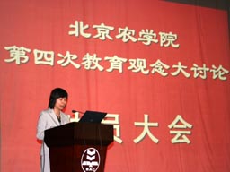 他指出,转变教育观念是落实本科教学整改方案的前提,要提高教育教学质量,首先要实现从高等学校的“精英” 教育向“普及化”教育转变,从应试教育向素质教育转变。要提高教育教学质量,还必须转变教育教学观念,加快教育教学改革,特别是课程体系、教材和教学方法的改革。提高质量、加快改革,需要我们的教师、职工和干部树立新的质量观,切实从“以教师为中心的教学”向“以学生为中心的学习”转变。