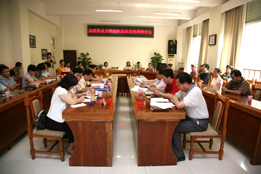 会议传达了学校有关文件精神。根据《关于进一步加强思想政治理论课教师队伍建设的实施意见》(委发〔2009〕16号 、院发〔2009〕27号 )的精神和要求,学校党委决定成立思想政治理论课教学科研部,该机构为隶属于学校的二级机构,与人文社科系合署办公。