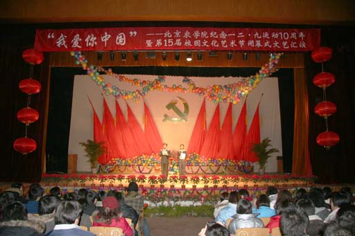 颁奖仪式后是纪念"一二·九"运动70周年暨第15届校园文化艺术节闭幕式文艺汇演。