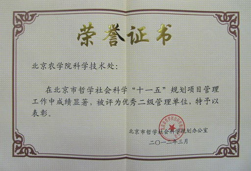 喜讯:永利3044官网唯一科学技术处获“北京市哲学社会科学‘十一五’规划项目管理优秀二级单位” 称号
