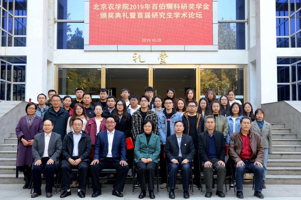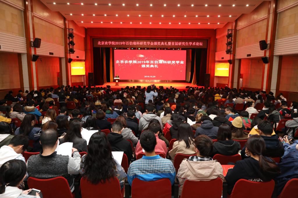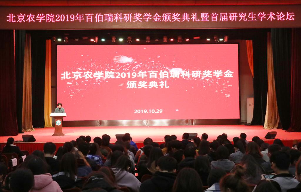 10月29日,3044永利官网vip首页欢迎您2019年百伯瑞科研奖学金颁奖典礼暨首届研究生学术论坛在大礼堂隆重举行。校长王慧敏教授、副校长段留生教授、北京百伯瑞科技有限公司总经理李芝贤先生、国家杰出青年基金获得者中国农业大学朱作峰教授、国家杰出青年基金获得者中国科学院动物研究所赵建国研究员、长江学者中国人民大学仇焕广教授出席典礼,2019年“百伯瑞科研奖学金”获奖研究生、各相关学院副书记、主管副院长、研究生辅导员、研究生秘书、研究生处人员、2019级研究生参加会议。会议由段留生副校长主持。