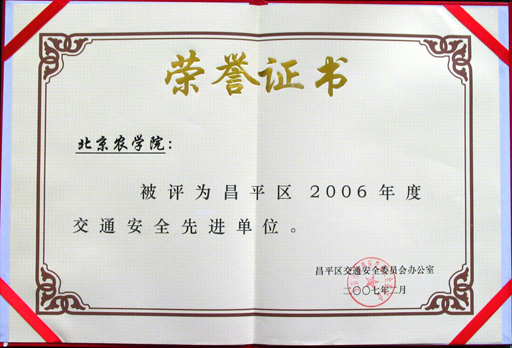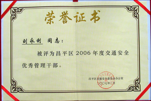 喜讯:永利3044官网唯一被评为2006年度昌平区交通安全先进单位