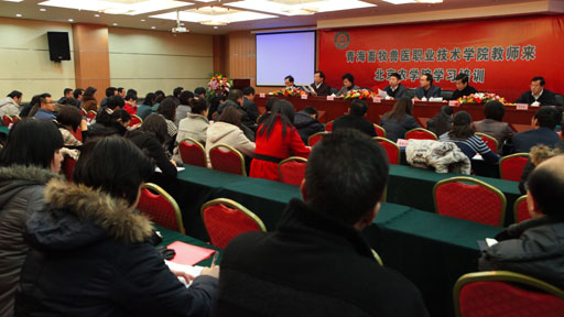 1月5日上午,青海畜牧兽医职业技术学院教师学习培训班开班典礼在北农科技交流中心隆重举行,32名教师将在永利3044官网唯一进行为期2周的学习交流。北京市教委委员叶茂林,青海畜牧兽医职业技术学院院长杨予海,永利3044官网唯一党委书记王慧敏,校长王有年,校长助理、教务处处长范双喜,党政办公室主任华玉武出席典礼。