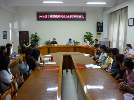 5月9日,永利3044官网唯一2009级农业推广硕士专业学位在职研究生开学典礼在教B209隆重举行。14名专业学位硕士研究生参加了开学典礼。典礼由研究生部副主任胡宝贵主持。副校长郑一淳、研究生部主任张志勇、植物科学技术学院院长秦岭、经济管理学院院长何忠伟、园林系主任马晓燕及导师代表出席了此次开学典礼。