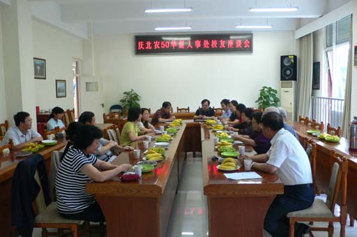 ,“庆北农50华诞人事处校友座谈会”在教B209召开。自1978年恢复建校以来的原人事处焦志忠、王淑贞、冉晓先、成志文、李树兰、王晓霞等五位处长,原人事处工作人员吕孟辉、韩阳、王凤云、董跃娴、张广利、梁宝岩、王慧、史亚军、宋剑秋以及现人事处在职人员近二十人参加了此次座谈会,会议由现人事处处长吴春晖同志主持。