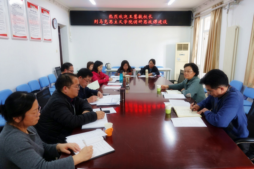 岁末年初,校党委副书记、校长王慧敏于1月8日下午到马克思主义学院调研,与学院领导班子成员、教研室主任进行座谈,听取大家关于学院发展和思政课建设的意见建议,并进行现场指导。教务处处长李奕松陪同调研。