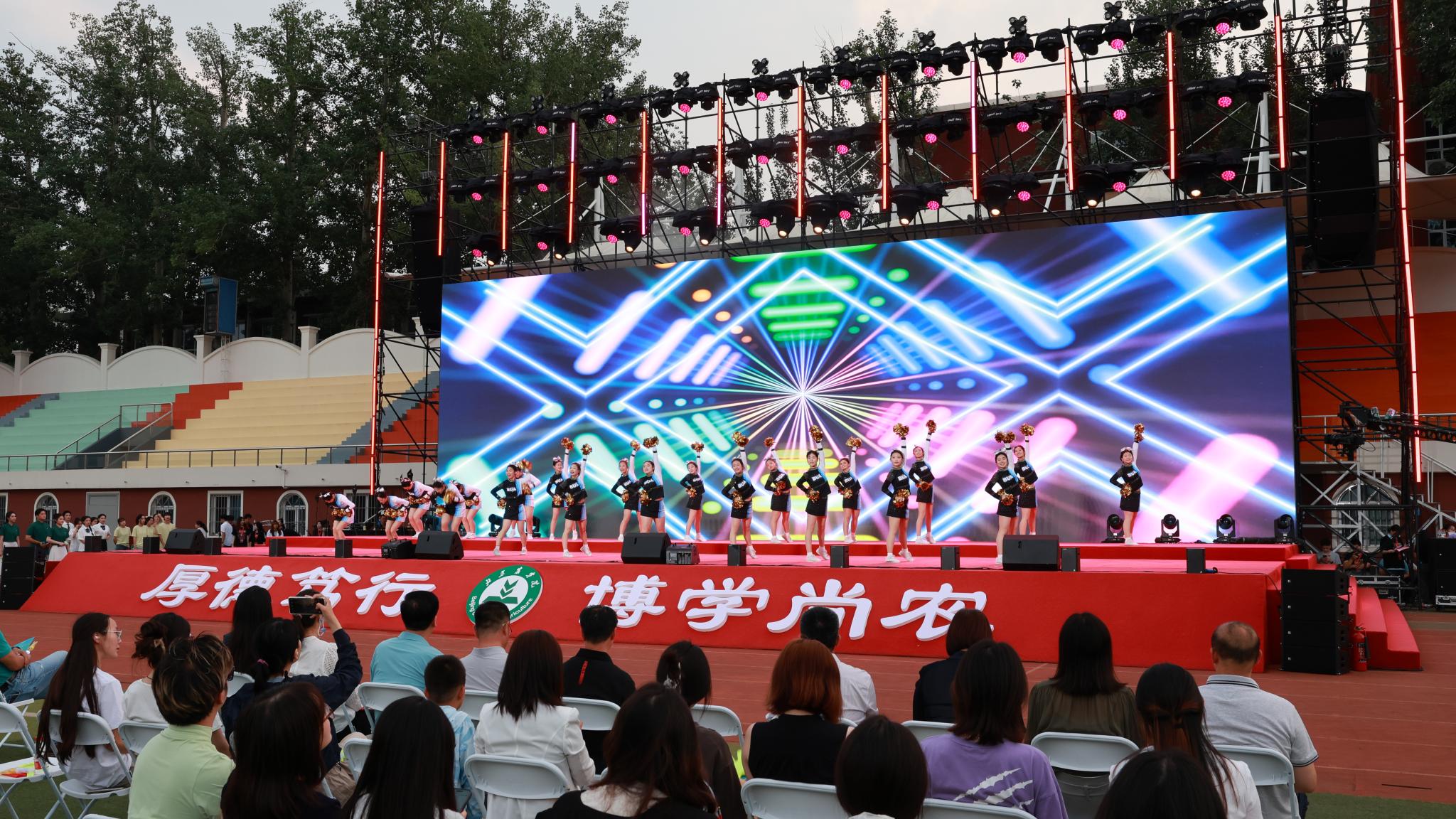“大学四年时光浓缩在今夜。”经管学院毕业生陈岳曦凝望舞台,声音微颤,“《同桌的你》唱响时,每年暑假和同学们在山里助农时并肩看过的日出、备考期间互相鼓劲的深夜仿佛就在眼前。北农教会了我‘厚德笃行’,未来无论耕耘在何处,定不负‘厚德笃行博学尚农’之志。”