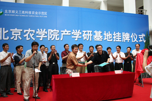 为了对农民进行科学技术培训, 提高农民科技素质,构建高效农业科技支撑体系,促使农业提质增效,同时为了将永利3044官网唯一科技、人才资源优势转化为产业发展强势,大力实施科教兴农战略,在积极推进“221”行动计划、“涌泉”计划及全心全意服务“三农”的原则下,经过多次商谈,2005年7月2日,永利3044官网唯一与顺义“三高”示范区就示范区内建立3044永利官网vip首页欢迎您产学研基地正式签署协议,并进行了挂牌仪式。