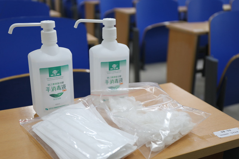 考场考位间隔不小于1米,设置多个隔离考场(考场内配备监控设施)。每个考场配备消毒免洗洗手液、医用外科口罩、一次性橡胶手套等防疫物品。