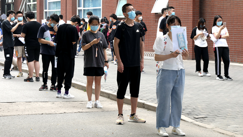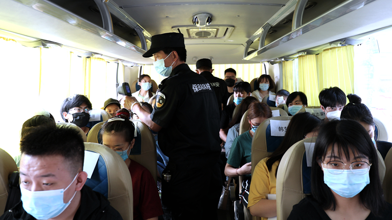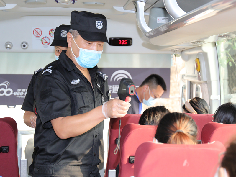 考生入校时,学校工作人员对所有考生、带队教师、司机的体温进行检测,并查看健康绿码。