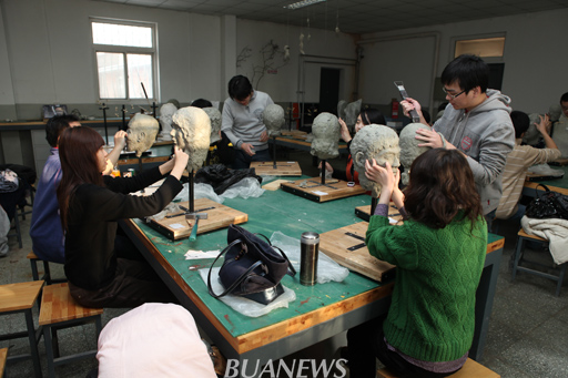 1月14日,副校长杜晓林来到位于荷花池北边的艺术模型实验室,观摩了学生雕塑实训情况。