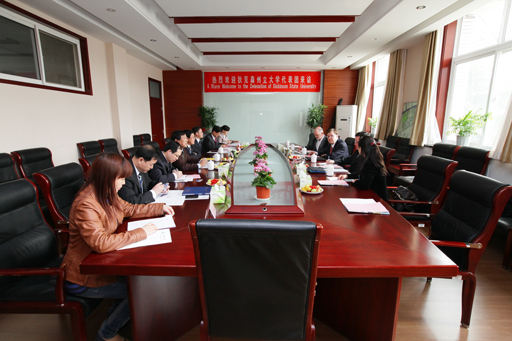 校长王有年对来宾表示热烈欢迎,简要介绍了学校的基本情况,表达了进一步加强两校交流与合作的意向。狄克森州立大学校长Dr. Richard McCallum对永利3044官网唯一的热情接待表示感谢,重点介绍了狄克森州立大学开展国际合作的主要项目。针对两校能够对接的专业以及开展合作的模式,双方进行了深入的研讨。会谈在愉快而热烈的氛围中进行,双方都真诚地希望早日促成两校的实质性交流与合作。
