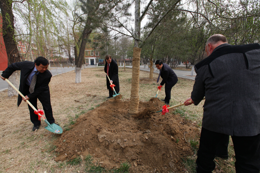 会后,双方在校园共同栽种了一棵象征两校友好合作的友谊树。