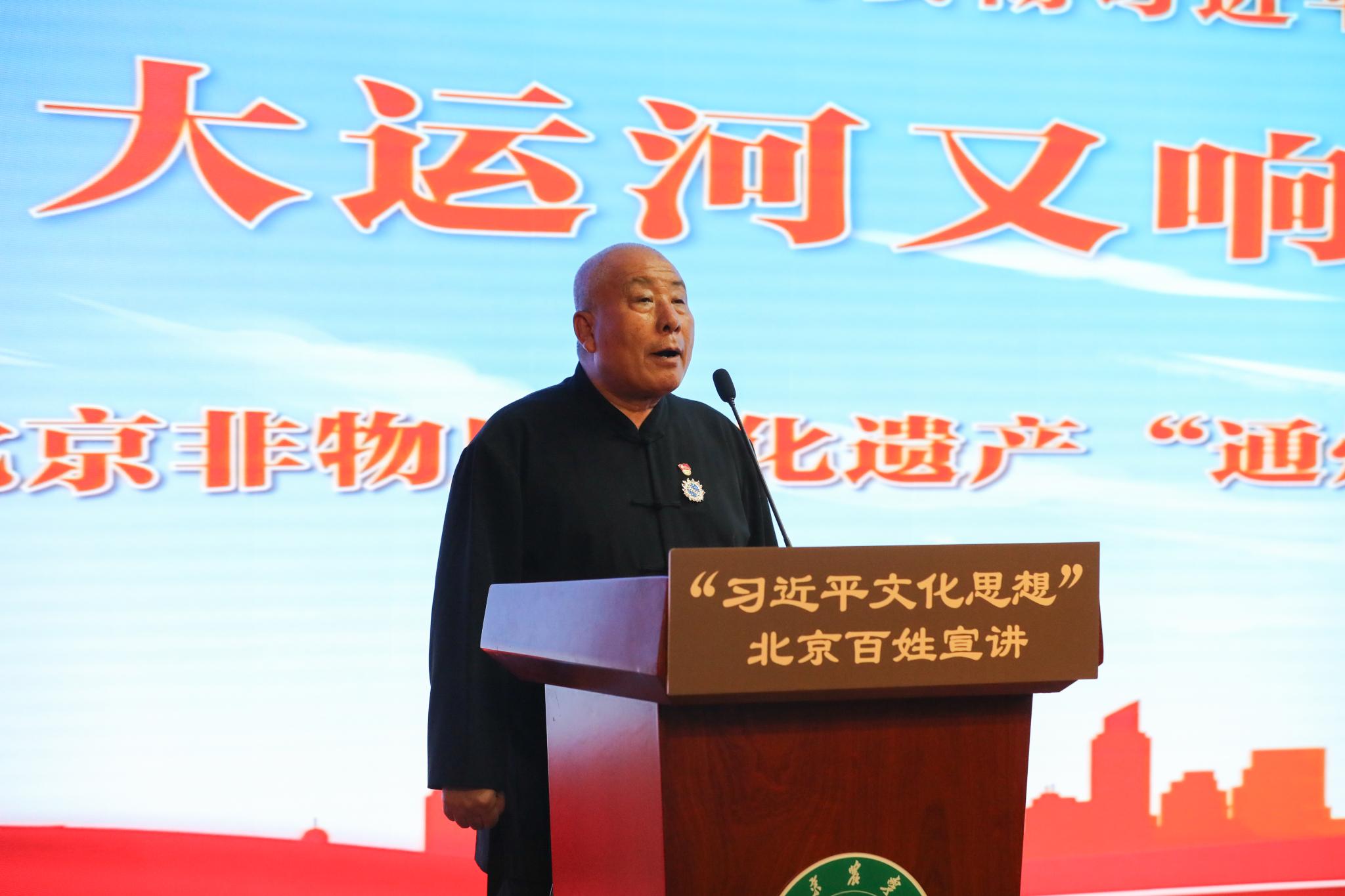 “通州运河船工号子”第四代传承人赵义强讲述了他不忘传承责任,组建一支33人的三地运河号子表演队,既保留原生态的船工号子韵味,又适应现代舞台表演需求,代代传承运河文化的船工号子的故事。他现场表演的船工号子引发阵阵掌声。