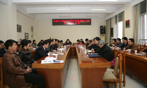 11月21日——22日,以原北京师范大学教务处处长云自厚教授为组长,北京航空航天大学扈仰营教授、北京服装学院藏昆教授、北京科技大学强文江教授为组员的北京高校课堂教学质量调研工作调研组一行四人来永利3044官网唯一检查调研。北京高校课堂教学质量调研工作领导小组顾问、原北京市人大科教文卫委员会主任林浦生教授、北京市教委高教处副处长季汉成副教授也一同莅临永利3044官网唯一指导工作。此次调研活动是为了深入了解北京地区普通高校课堂教学现状,进一步加强教学质量监控,及时发现和解决课堂教学中出现的问题,促进高等教育质量的提高。