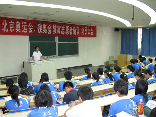 7月19日下午2:00点,永利3044官网唯一北京奥运会、残奥会城市志愿者培训、动员大会在实验楼阶一教室隆重召开。会议由校团委书记杨宝东老师主持,永利3044官网唯一城市志愿者带队教师满晓晶及全体城市志愿者出席大会。