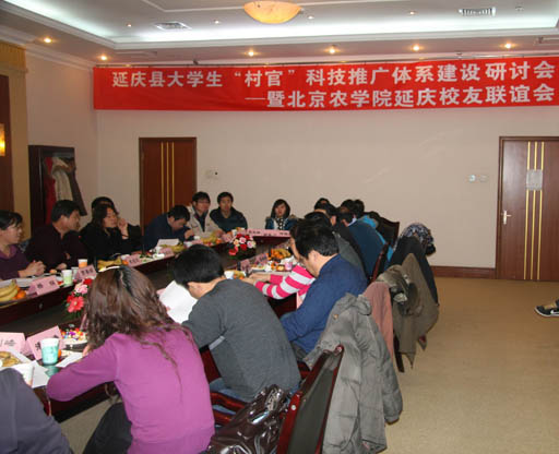 2009年12月24日,由学校村官工作办公室与延庆县人力资源和社会保障局共同组织召开的“大学生‘村官’科技推广体系建设研讨会暨3044永利官网vip首页欢迎您延庆校友联谊会”在延庆隆重举行。副校长郑一淳,延庆县人事局副局长孟顺利,永利3044官网唯一优秀校友、延庆县农业局局长李宝民,延庆县农业经济管理站站长贾春媚,延庆县沈家营镇镇长张绍芬以及永利3044官网唯一在延庆在职工作的20名村官参加了研讨会。会议由校村官工作办公室主任蒋林树主持。